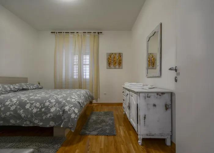 Grisogonoの近いバチュヴィツェ地区にある50m^2のVicenco Top Location Splitアパ-トは,4人の顧客向けです. それはSplit鉄道駅から550メ-トルとOmiskaバスステ-ションから300メ-トルに位置しています.
